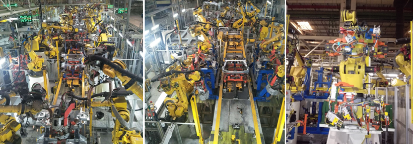 本公司自2018年2月開始,陸續(xù)承接華晨寶馬鐵西工廠F39(側圍 ,合車)項目 ,華晨寶馬大東工廠G08(底板)項目,華晨寶馬鐵西工廠G28(底板)項目,華晨寶馬綠地工廠G28(底板總成)項目的機器人在線離線調試,項目所用機器人分別是寶馬L7標準下的ABB機器人,寶馬V6標準下的KUKA機器人,寶馬V8標準下的FANUC機器人。涉及到的工藝有搬運,點焊,螺柱焊,沖鉚,涂膠,視覺測量。熟練掌握不同品牌機器人在同一工廠標準下的聯(lián)合應用,為項目的可持續(xù)化奠定基礎。